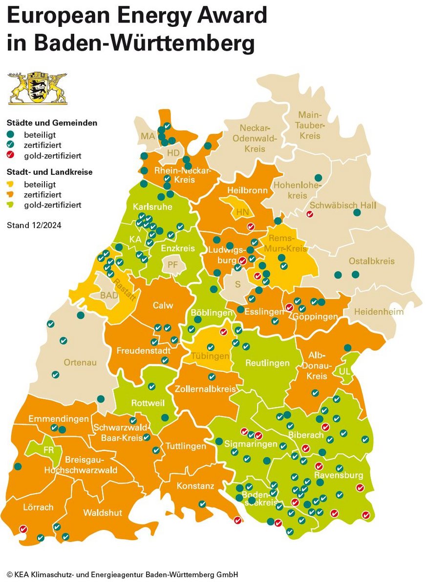Der European Energy Award ist ein internationales Qualitätsmanagementsystem und Zertifizierungsverfahren, das zahlreiche Kommunen in Deutschland und Europa auf dem Weg zu mehr Energieeffizienz unterstützte – systematisch, partnerschaftlich, nachhaltig. Mit mess- und sichtbarem Erfolg.